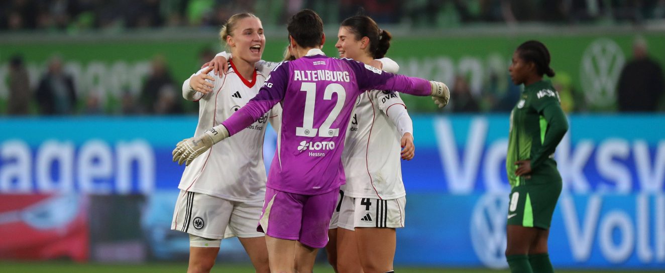 Die Eintracht-Frauen setzten im Top-Duell der Bundesliga gegen den VfL Wolfsburg ein Zeichen und gewannen das Auswärtsspiel in der Volkswagen Arena mit 3:2. Vor rund 4.350 Zuschauern entwickelte sich von der ersten Minute an eine furiose Partie zwischen den Tabellenzweiten und -dritten der letzten Saison. Beide Teams zeigten sich mit weitgehend offenem Visier. Vor allem Torhüterin Lina Altenburg avancierte zum Garanten für die aus der Autostadt entführten drei Punkte, durch die die Hessinnen wieder zur Spitzengruppe der Liga aufschließen.