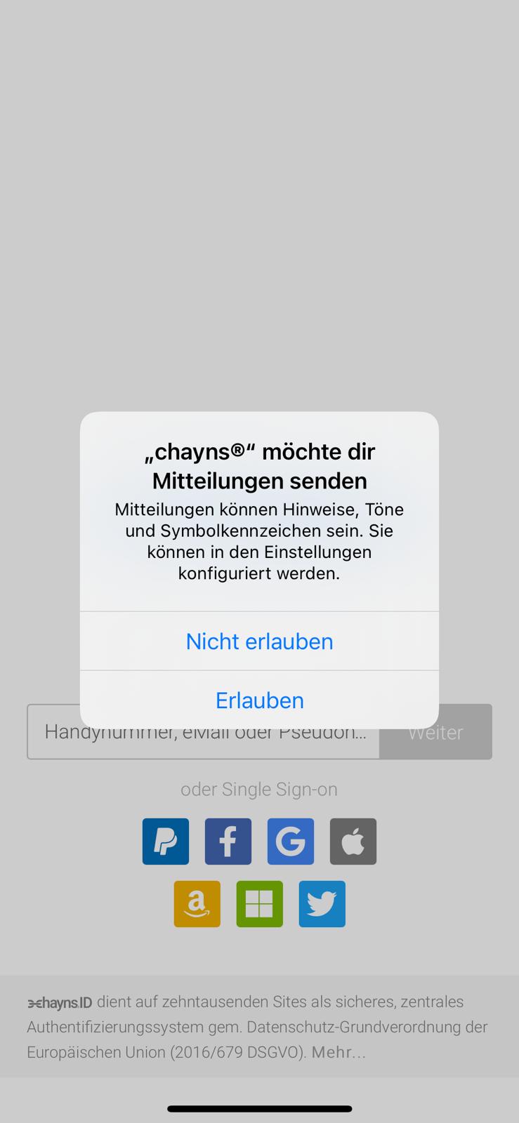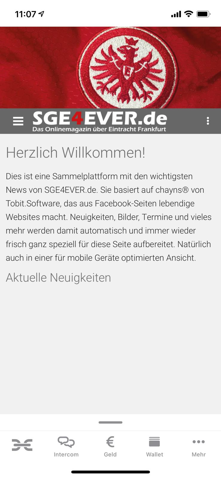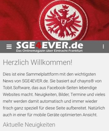 Darauhin müsst ihr euch entweder kurz mit eurem Benutzernamen aus der vorherigen SGE4EVER.de-App einloggen, verbindet euch mit einem der Single-Sign-on-Möglichkeiten (z.B. Facebook) oder registriert euch bspw. mit eurer Handynummer. Anschließend klickt ihr nur noch auf das darauffolgende „SGE4EVER.de-Icon“ und gelangt wieder in eure gewohnte Umgebung. Wird die Erlaubnis für künftige Push-Benachrichtigungen erteilt, ertönt künftig bei neuen Postings wieder eine Benachrichtigung auf eurem Smartphone. Einige Benutzer anderer Chayns-Apps berichten allerdings darüber, dass Push Benachrichtigungen nicht immer korrekt ausgespielt werden.